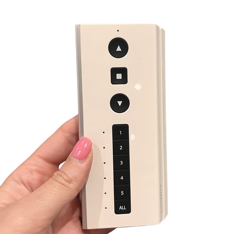 The Automate Push series fuses luxury and functionality in a well-crafted, minimal design. The 5 channel remote features soft tactile rubber buttons that can control 5 individual or 5 groups of shades, as well as an “All” button that conveniently activates all programmed channels. The Push5 is available in two premium finishes - Gloss White and Matte Black.