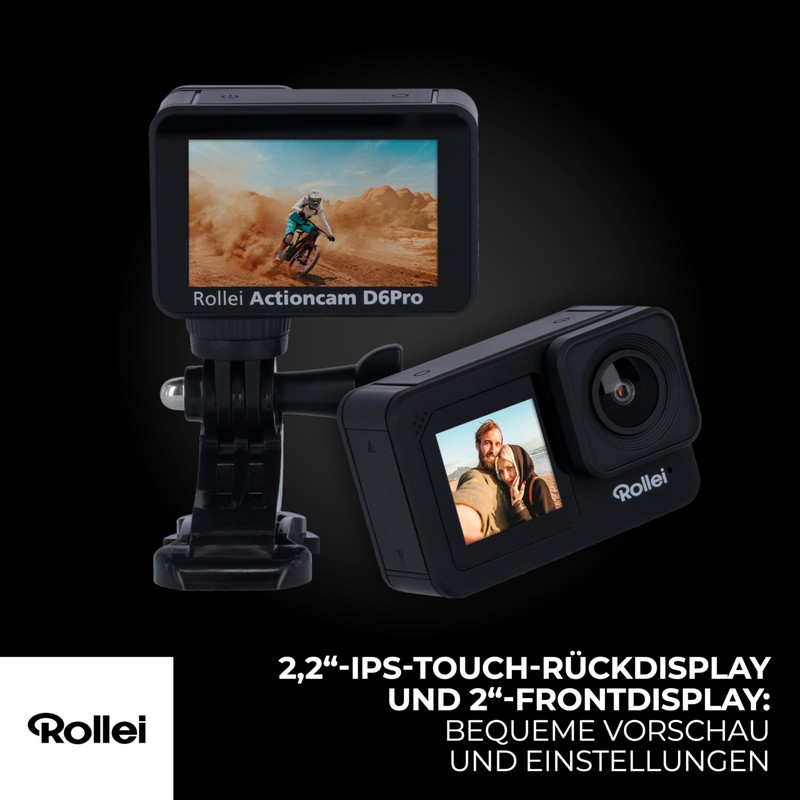 Rollei Actioncam D6Pro - 5K Video, 2.2 Inch IPS Touch Screen, Waterproof Housing up to 30 m, 6-Axis Image Stabilization, Wireless Microphone Included