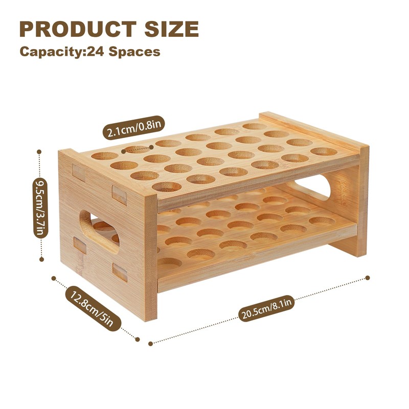 - · Compatible with Multiple Bottle Sizes: Each slot fits most 5ml, 10ml, and 15ml bottles. Ideal for standard rollerball bottles, mini perfumes, or small cosmetic containers. A versatile choice for beauty lovers and aromatherapy fans alike.