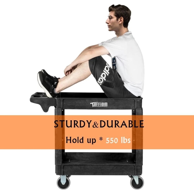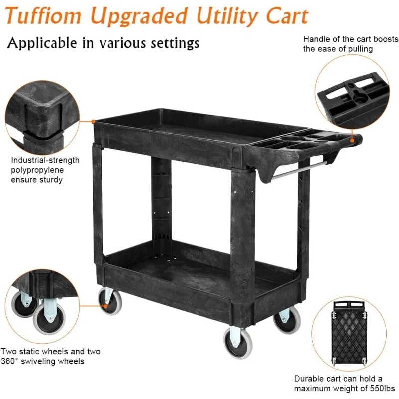 Rolling 2-Tier Mobile Storage Organizer Plastic Service Utility Cart with Wheels