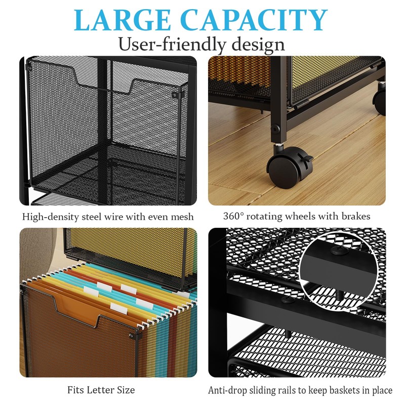 Sbanmao Rolling File Cart with 2 Storage Drawers, Under Desk Storage, Hanging File Folder Organizer with Wheels, Printer Stand Utility Craft Cart Filing Cabinet for Home Office,Black