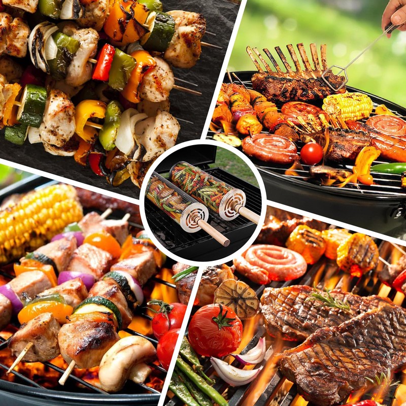 HEURYTEP Rolling grilling baskets revolutionize the grilling experience. Our grill net cylinders ensure even cooking ,that they would ba a perfect solution for grilling delicate items like small veggies ,which tend to fall through traditional grates. Whether you’re grilling vegetables, seafood, or meat, this grill basket ensures your food is cooked to perfection every time.