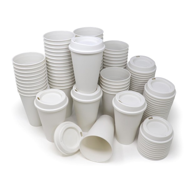 Rolling Sands USA Made 16 oz Reusable Coffee Cups with Lids 60 Pk, To Go Travel Cups, Hot or Cold Drinks, Dishwasher and Microwave Safe, White