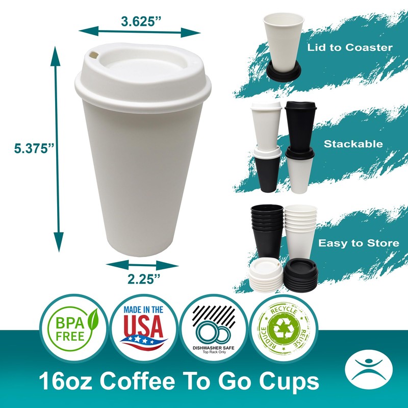 - MANY USES - Our lightweight and sleek on-the-go cups are the perfect choice for all hot and cold drinks from coffee and tea to smoothies and soda. Snap-On lids also serve as coasters to protect your desk or table