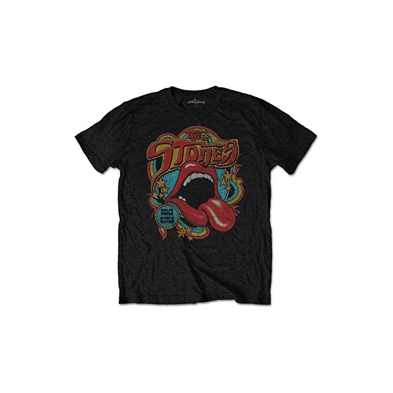 Rolling Stones Men's Retro 70's Vibe Vintage T-Shirt Large Black