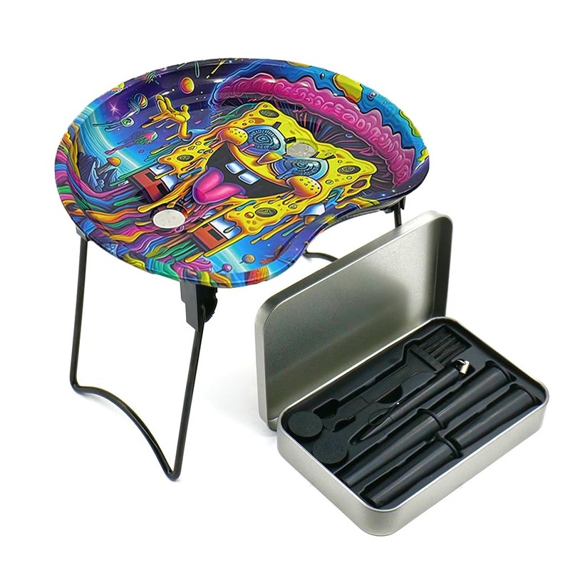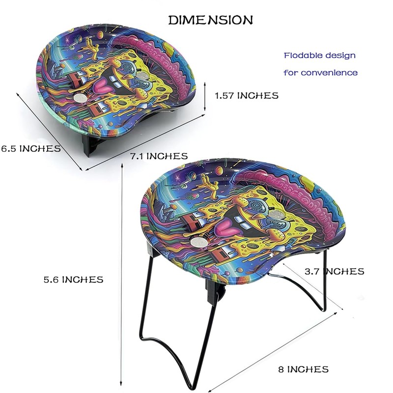 - Our rolling trays with cool prints and leg stand can make for an excellent gift or stocking stuffer. It's compact size is 7.1 inches x 6.5 inches x 1.57 inches