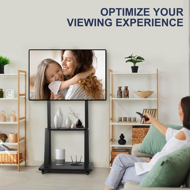 Maiproo Rolling TV Stand with Wheels for 32-75 Inch Heavy-Duty Mobile TV Cart LCD LED OLED Flat Panel Screens Smartboard Holds up to 100lbs Portable TV Stand on Wheels with Shelf Height Ajustable