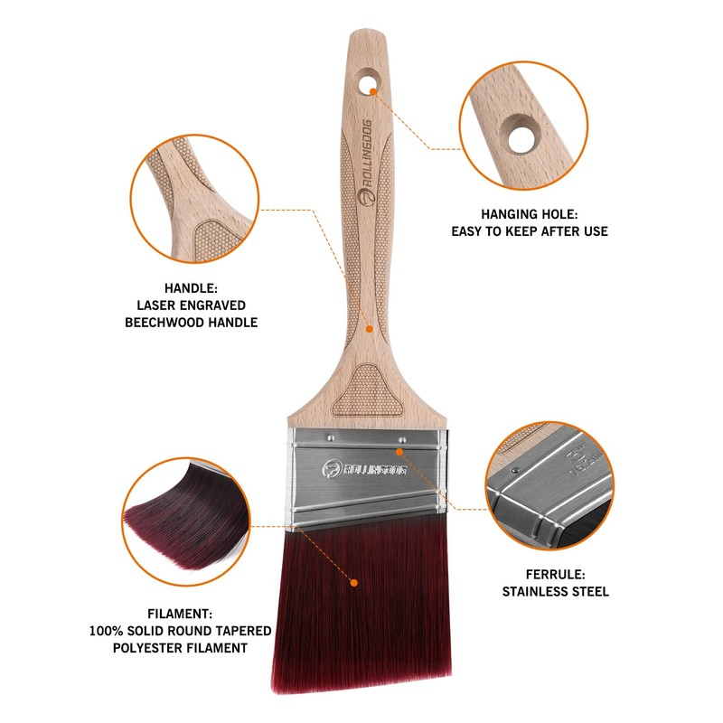 ROLLINGDOG 3" Angled Paint Brush - Cutting in Paint Brush with Tapered Polyester Filament Great for Wall Edging Painting and Decorating