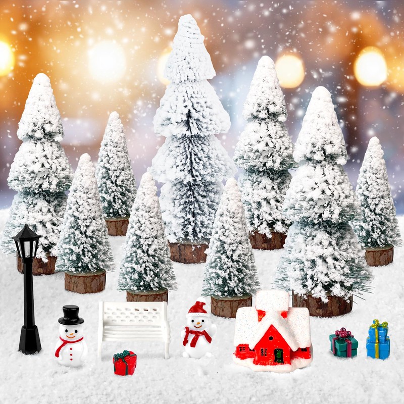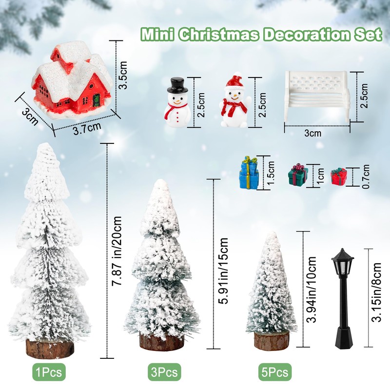 - The 8 resin micro landscape includes: red house, snowman, Christmas gifts, street lights, chairs. With these miniature figures and Christmas trees, you can create winter scenes and miniature scenes of Christmas.
