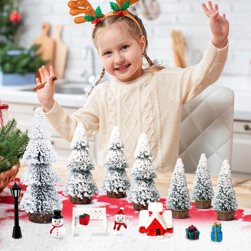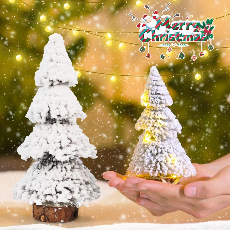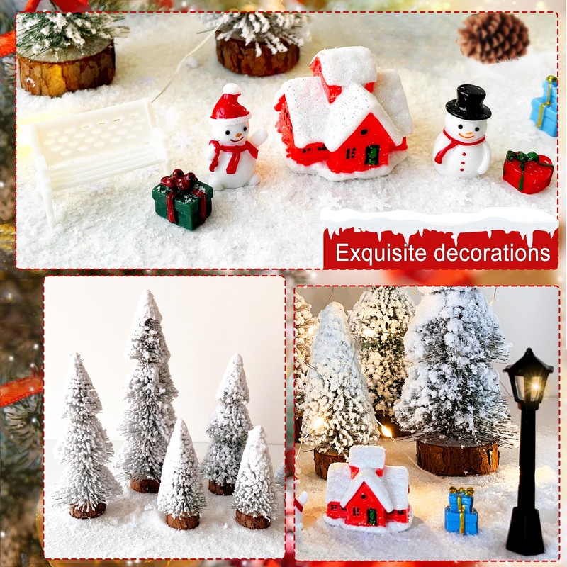 ROLLWAY Mini Christmas Tree with Snow Miniature Figures Set, Artificial Christmas Tree, Small White Artificial Christmas Tree, Decorative Christmas Trees, Small Christmas Trees, Christmas Decoration