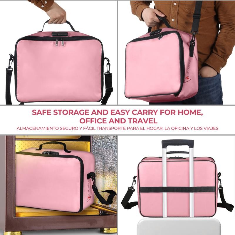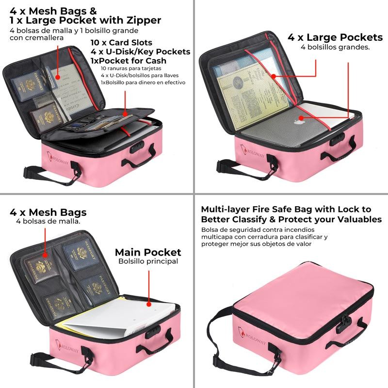 ROLOWAY Fireproof Document Bag with Lock (17 x 11.8 x 5 inch) electronic safe - Color: Lovey Rose