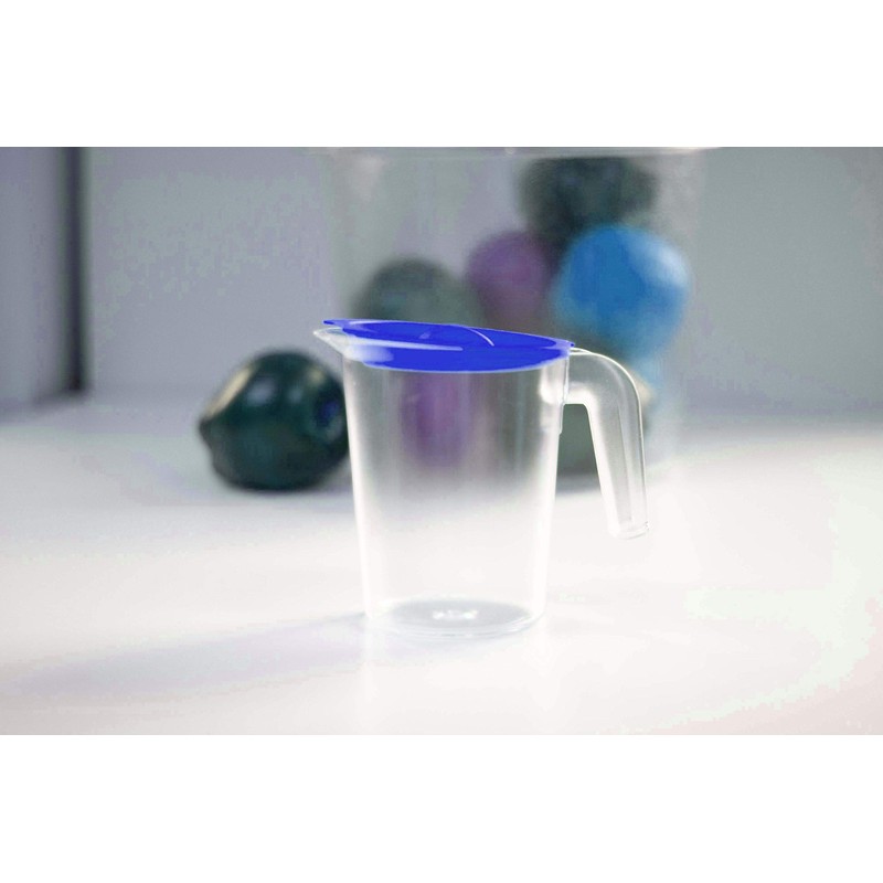 Roltex Small 500ml Plastic Frosted Clear Jug and Blue Lid Reusable Virtually Unbreakable