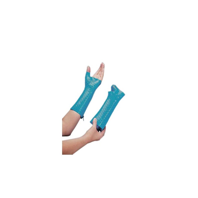 - Made of 3/32" Aquaplast Watercolors electric blue, flat splint blank can be used as thumb spica or wrist cock-up splint depending on how it is trimmed