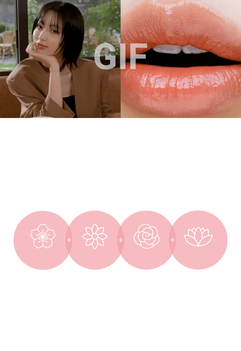The moisturizing oil extracted from cherry blossom, water lily, rose, and lotus provides sheer glow and comfortable lips without dryness.
