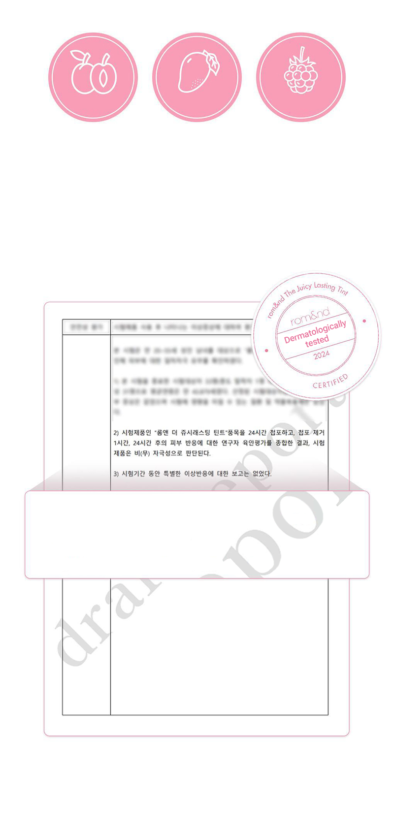 *Test name: Primary skin irritation test for rom&nd The Juicy Lasting Tint