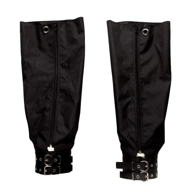 - Adjustable suspenders hold these ice boots