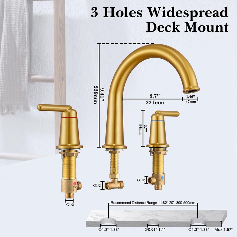 - 🛁【High Arch Spout and 2 Handle Design】 Gold high-arch gooseneck roman tub faucet not only provides an elegant look but also offers more space under the faucet.2-handle lever handles design allows for easy flow and temperature control.