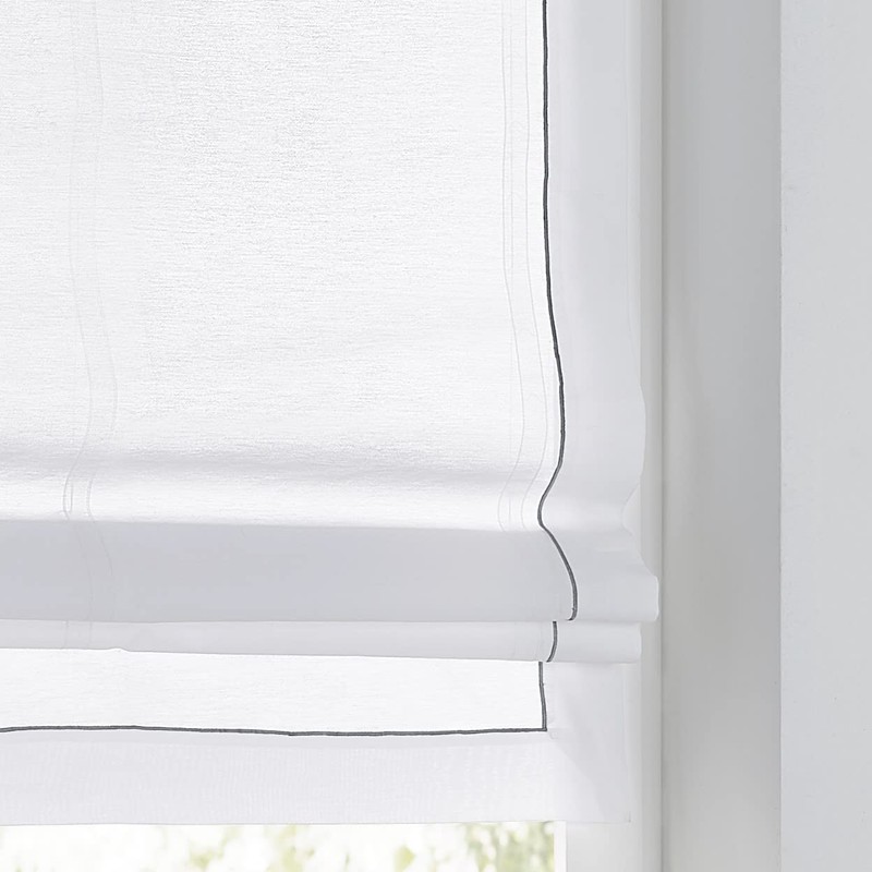 Roman Blind 'Bente' White Semi-Transparent with Decorative Stitching All Arou...