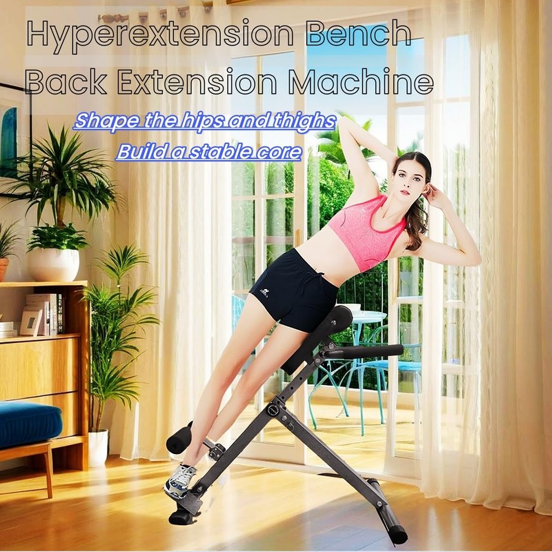 Roman Chair Back Extension Machine for Home Gym,Adjustable and Foldable Hyperextension Bench,Multi-Angle Core, Glutes,Hamstring & Lower Back Trainer