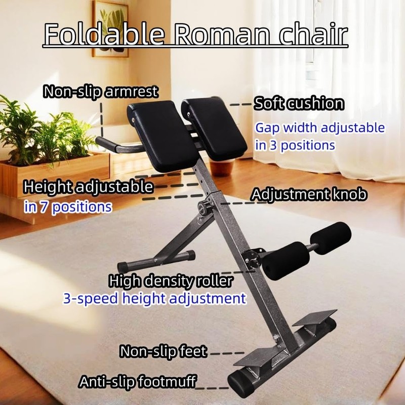 - [SPACE SAVING]: Foldable Roman chair can be easily folded in two steps to help you save space, it’s portable enough for apartments, home offices, garage gyms, under the sofa or in the corner of the wall, ideal for home gym or smaller workout space.