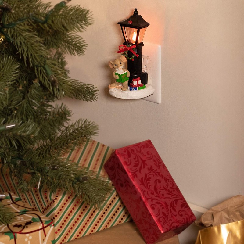 Roman Charming Tails Mice by Lamp Post Night Light 7 Inch Multicolor