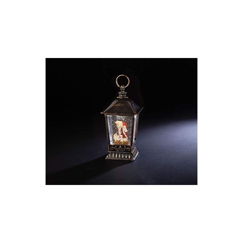 - INCREDIBLE DETAIL: This Confetti Lites lantern depicts the Kneeling Santa greeting the infant Jesus Christ for the very first time underneath a sky of softly falling, glittering snow. This lantern can be lit to showcase its charming beauty (batteries not included).