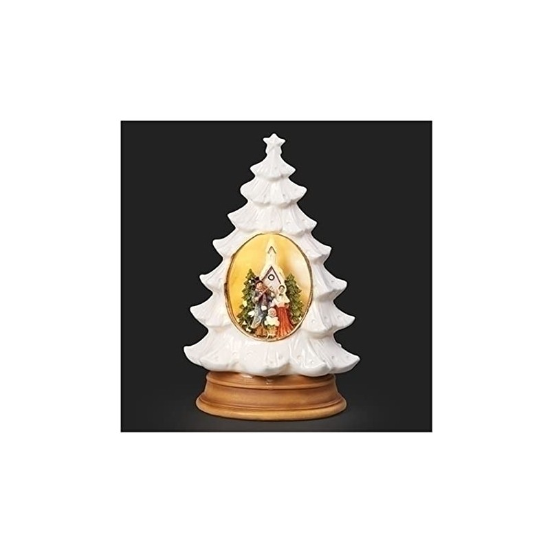 Roman Lighted Tree Diorama with Carolers Figurine, 11-inch Height, Christmas Decoration
