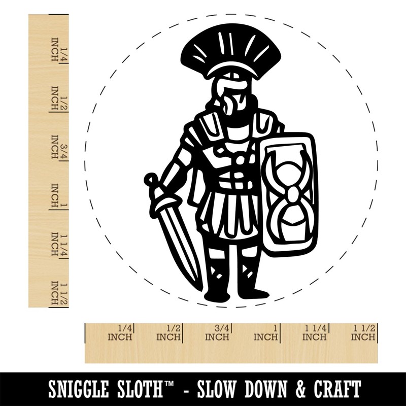 Roman Soldier Centurion Sword Shield Self-Inking Rubber Stamp Ink Stamper for Stamping Crafting Planners - 1-1/2 Inch Large - Black Ink