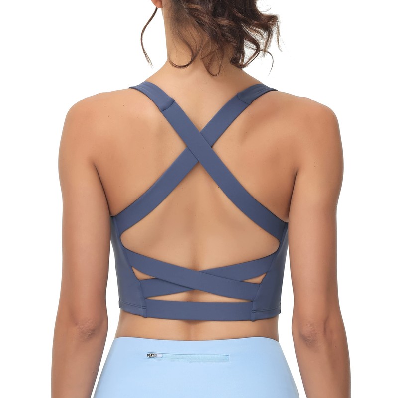 romansong Sujetadores deportivos de yoga con tirantes para mujer con espalda cruzada acolchada, Azul marino, M