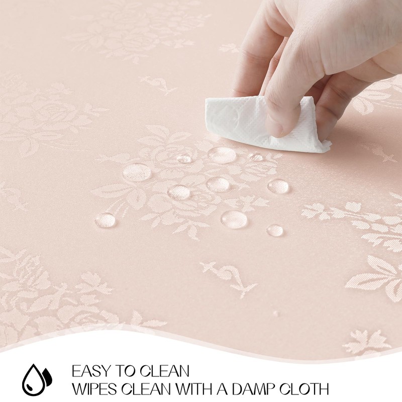 - EASY TO CARE: All liquids bead up on the tablecloth for easy cleaning; Machine wash in cold water and tumble dry on low; Iron on low temperature; DO NOT BLEACH.