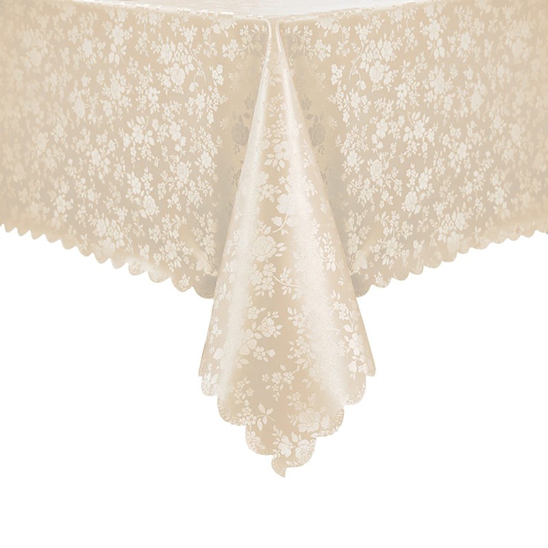 - FUNCTIONAL AND DECORATIVE: Crafted from premium flannel backed vinyl material, our tablecloth helps resist tearing and abrasion for your tables and furniture. The floral damask pattern and the scalloped edges of the tablecloth also add a sense of elegancy to your dining scene.