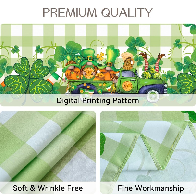 - ๐๐ซ๐๐๐ญ๐ข๐ฏ๐ ๐๐ซ๐ข๐ฌ๐ก ๐๐๐๐จ๐ซ: Featuring shamrock, buffalo plaid, and leprechaun patterns, our St. Patrick's Day tablecloth is designed to add a touch of Irish charm to your decor, perfect for celebrating the holiday in style.