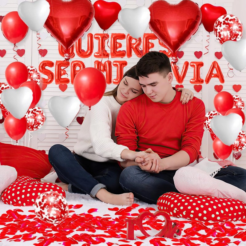 - What you get: this romantic rose petals decoration kit contains 1000 pieces red rose petals, 21 pieces red and red confetti balloons, 16 pieces red and white heart balloons, 6 pieces 18 inch red heart balloons, 1 x glue balloon stickers, 1 x red bow. This Mother's Day decoration creates a romantic atmosphere and will ensure an unforgettable day!