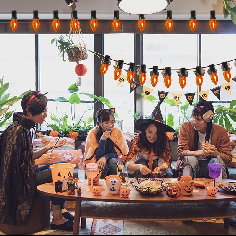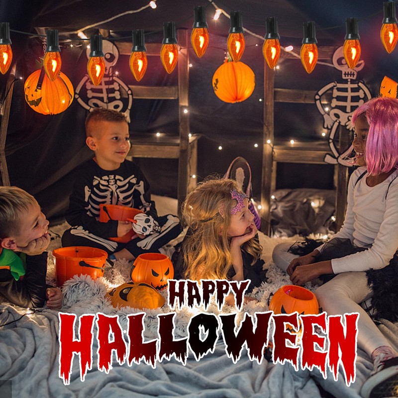 - Pack of 25 C7 Halloween light bulbs clear Flicker Flame Orange Bulb replacement bulbs, Halloween C7 replacement bulbs