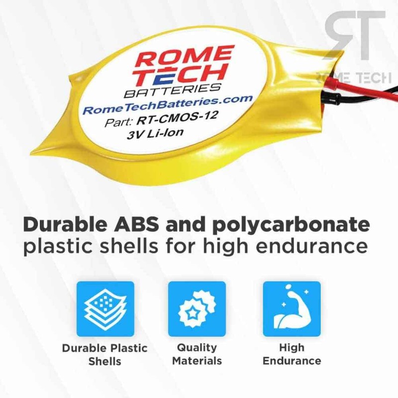 Rome Tech BIOS CMOS RTC replacement battery designed for reliable performance and high durability, it is guaranteed to maintain 80% of its rated capacity for 12 months from the date of installation. Rome Tech batteries are compatible only with the original equipment