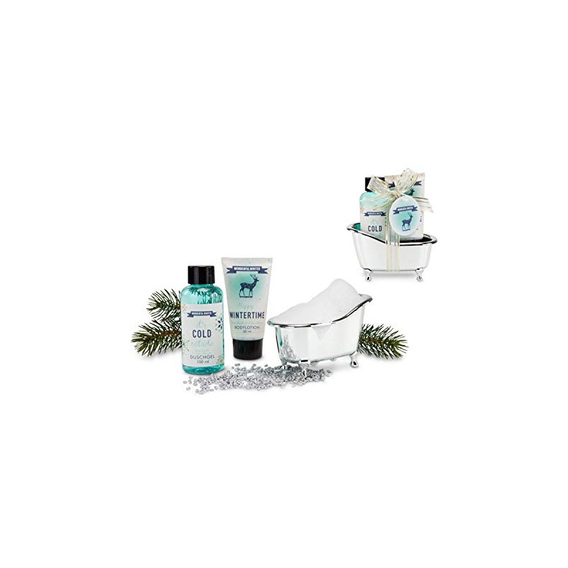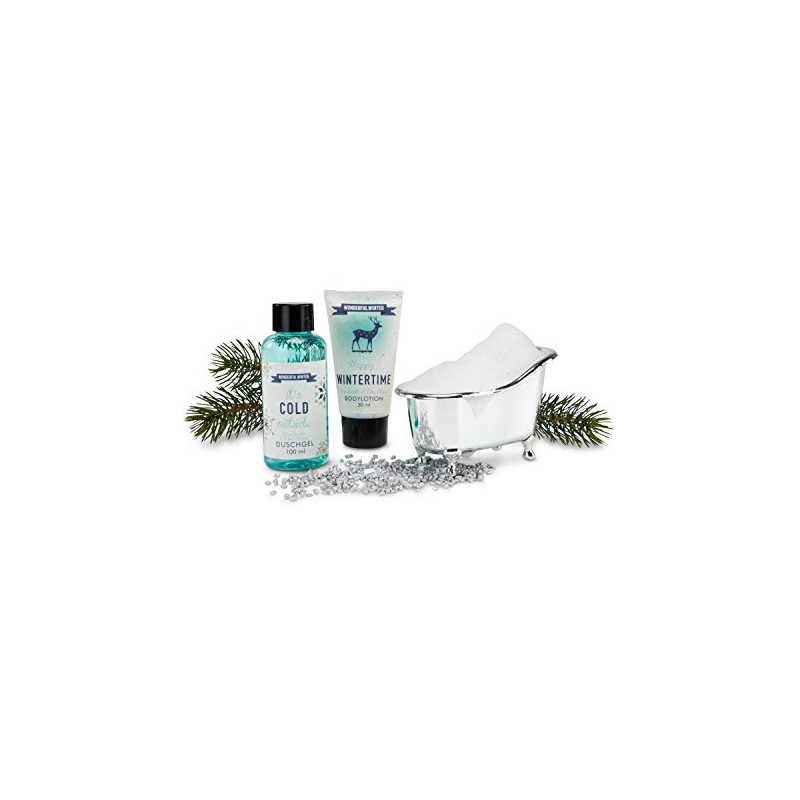 Römer Wellness Gift Set: Little Winter Time 3 Piece Set 100ml Shower Gel and 50ml Body Lotion in Decorative Silver Mini Bathtub Warm Vanilla & Lime Blossom Scented Dimensions: Approx. 12 x 5 x 14.5cm