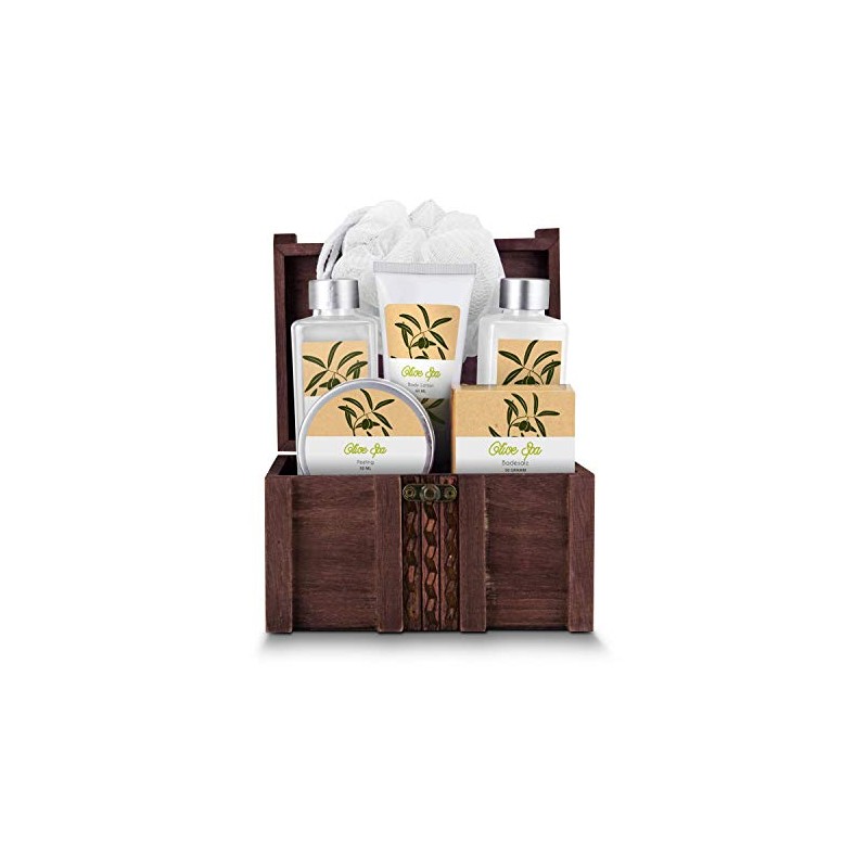 Römer Wellness Wellness Treasure Gift Set XL 7 Pieces: 170 ml Shower Gel, 170 ml Bubble Bath, 60 ml Body Lotion, 50 ml Scrub, 50 g Bath Salt + Mesh Sponge Treasure Chest; Olive Scent; Approx. 16.5 x