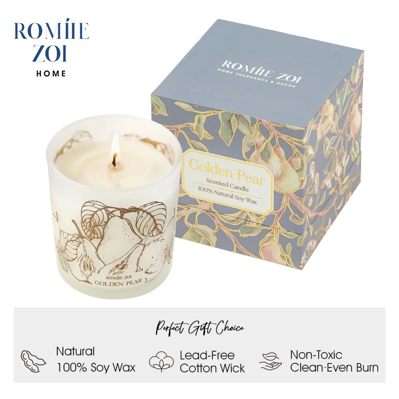 Romiie Zoi Best Candle Golden Pear 6oz Aromatherapy Soy Wax Jar for Home, Gifts Women 170g