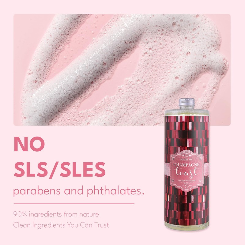 - Sparkling & ElegantA light and bubbly champagne-inspired scent that adds a celebratory feel to every wash. This foaming hand soap refill is plant-based, gentle, and perfect for daily use in the kitchen or bathroom.