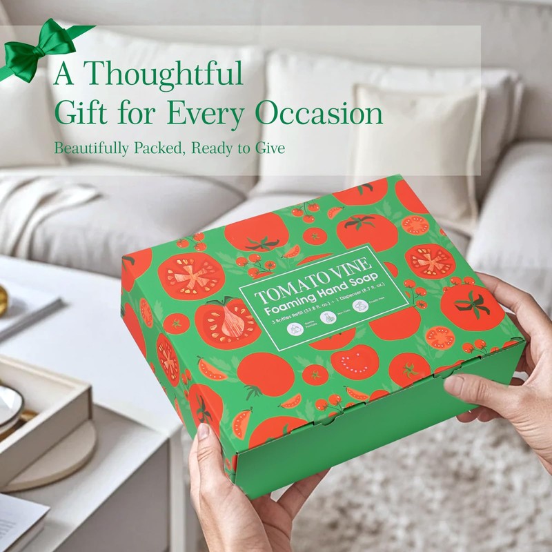 ROMIIE ZOI Foaming Hand Soap Refill Gift Set – Tomato Vine Scent – 3 Pack (33.8 Fl Oz Each) with Refillable Dispenser, Chemical-Free & Moisturizing Formula – Bulk Refills Setfor Bathroom & Kitchen