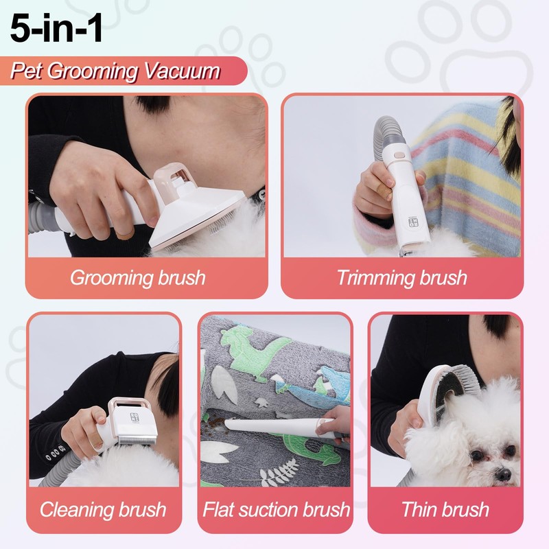 - Multi-functional Pet Grooming Set: The Romiromi Pet Grooming Kit combines a vacuum device and electric clippers to meet various pet care needs. The vacuum cleaner comes with multiple attachments, such as adeshedding tool, cleaning brush, and grooming brush, effectively removing excess hair and dirt from pets while maintaining their coat's cleanliness and health.