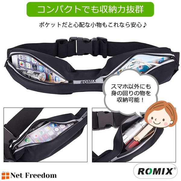 ROMIX Runner Waist Pouch, Waist Bag, Running Belt, Ultra Lightweight, Ultra Thin, Waterproof, Sweat Proof, Super Large Storage, Reflective Material, For Cycling, Jogging, Night Use, Marathon Pouch