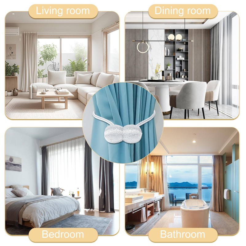Romon Magnetic Curtain Tiebacks, Pack of 2 Curtain Holdbacks Rope, Shower Curtain Back Holder, Strong Durable Magnetic Holdbacks Buckle Rope for Home, Office, Window Decorative, Pretty and Fashionable