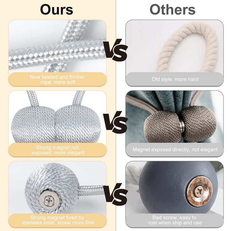 - Easy to use: simply bring the two magnetic balls close and they automatically snap into place. This magnetic curtain tiebacks holds your curtains in place without having to reassemble or drill holes in the wall.