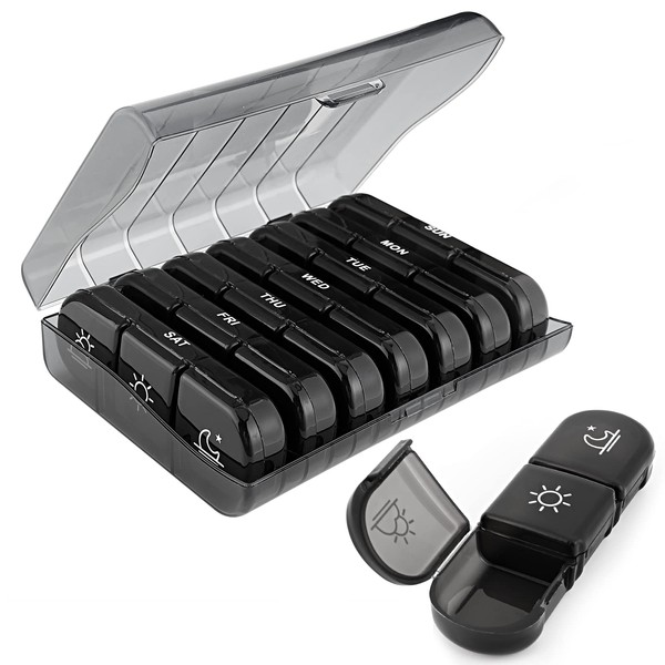 • Large capacity: the small compartments of the medicine dispenser are all large enough to store a variety of pills, tablets, capsules, etc. Prepare the weekly pills (morning, noon, evening) in advance as needed so that you don't forget to take them.