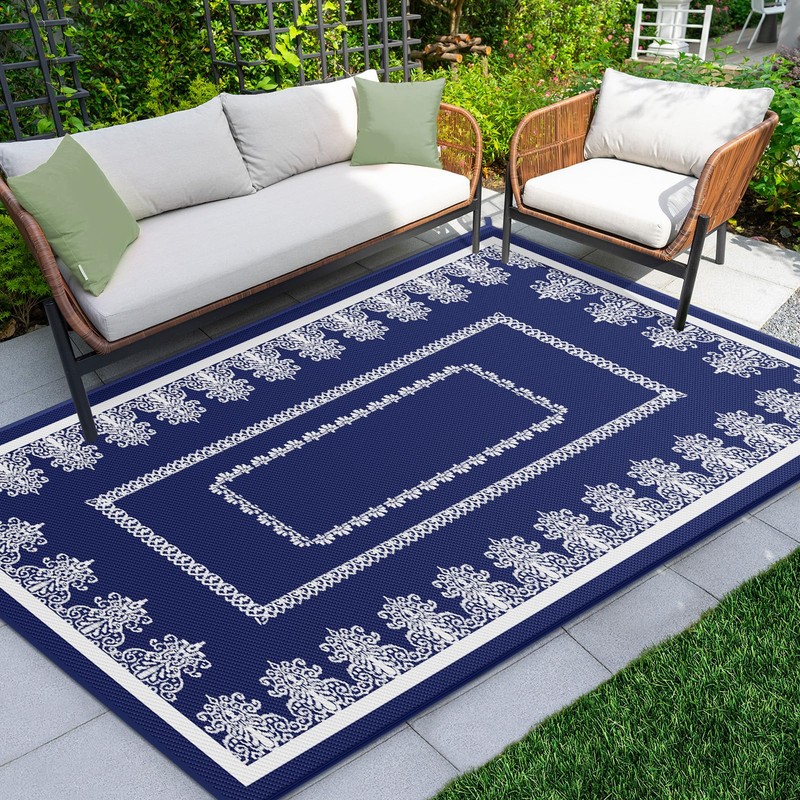 - RECYCLED MATERIALS REVERSIBLE RUG: Made from 100% virgin polypropylene, this outdoor rug is a sustainable choice for the ecological consciousness consumer. It's recyclable materials minimize environmental impact while providing durable and functional outdoor accessories. Featuring a reversible pattern, this patio rug is available in a variety of finishes, allowing you to easily switch between different looks to suit your style preferences.