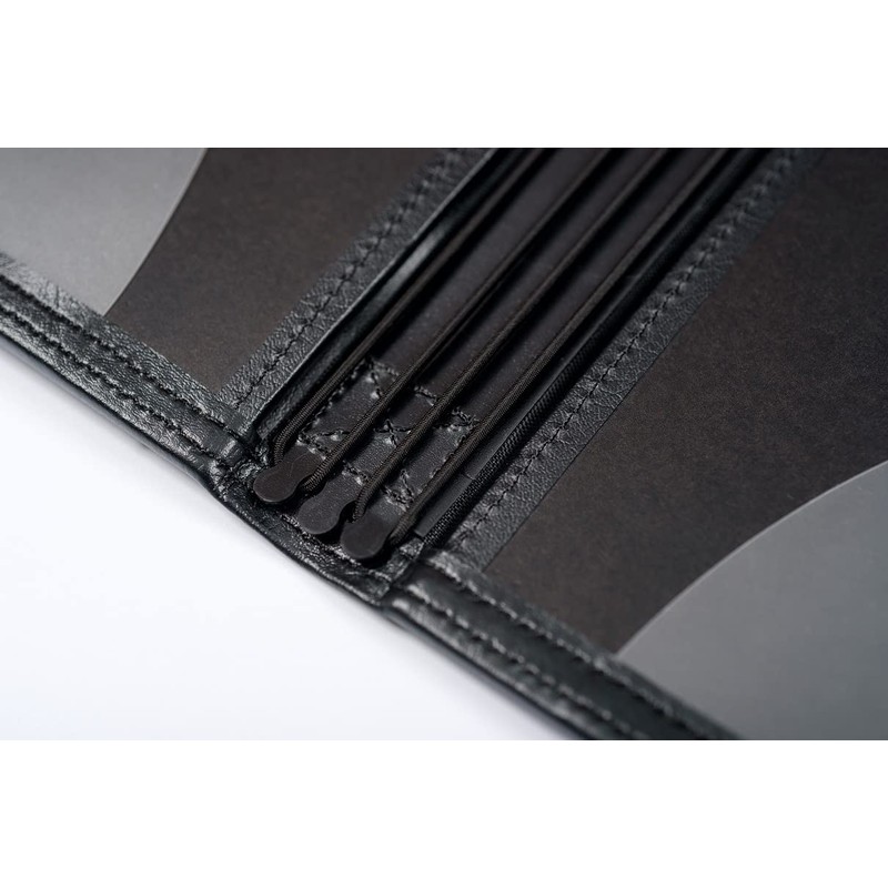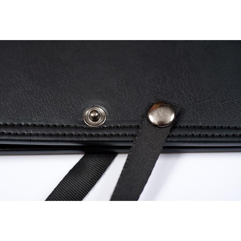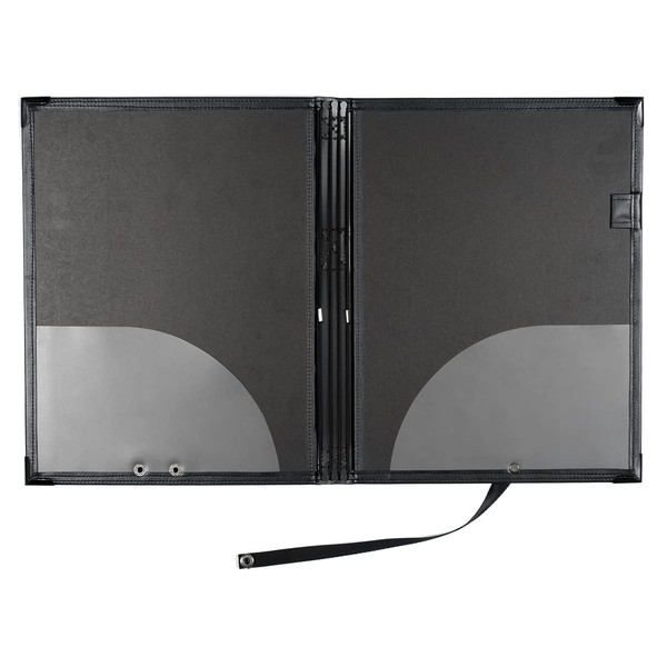 - Inside: Strong PVC cord panel. Four elastic cords to display 4 (A4) booklets.