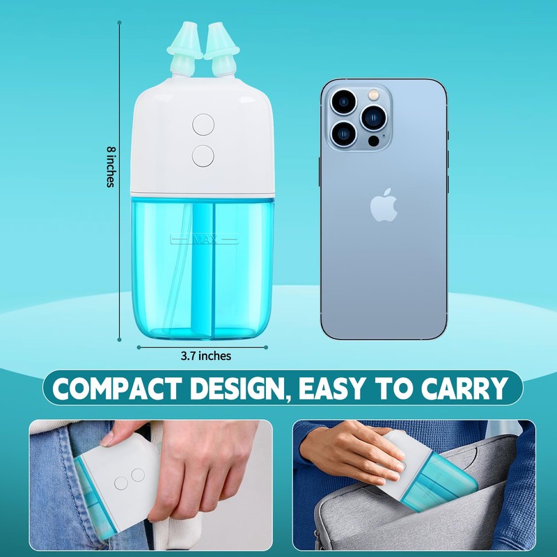 - Compact and Portable Design --- Its mini size fits easily into your handbag, making it perfect for daily use, travel, or business trips. Enjoy fresh, clear breathing wherever you go.Product Water Usage Instructions --- Use distilled water, filtered water, newly opened bottled purified water, or water boiled and cooled to body temperature, paired with your preferred sea salt concentration.(Note: Do not use tap water.)