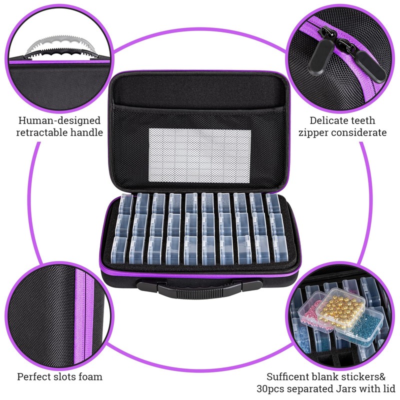 - MATERIAL: This bead storage box is made of EVA material. It has a 30-slot foam divider on the inside that protects the jar from friction or impact, and is sturdy and shockproof, suitable for daily use.