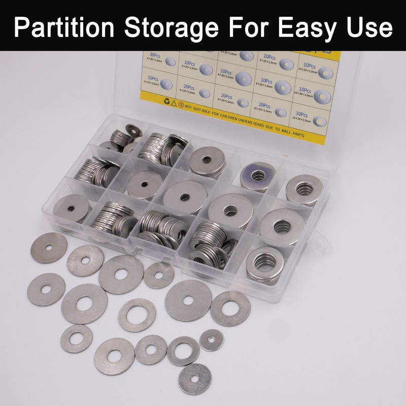 • Tragbare Sortierung Aufbewahrung: Edelstahl unterlegscheiben ist mit transparenten sortierung aufbewahrungskasten ausgestattet, die größe kennzeichnet klar, die dichtung benötigt, um schnell zu positionieren, verlustsicheres design für die einfache sortierung und tragung, geeignet für eine vielzahl von arbeitsumgebungen wie werkstatt, outdoor oder zu hause, um die arbeitsproduktivität erheblich zu verbessern